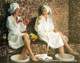 Sie genießen einen Tag in der exklusiven Saun und Wellnesslandschaft in modernem Wohlfühl-Ambiente und lassen es sich gutgehen mit 1 Glas Prosecco oder 1 Glas Vitaldrink, während sich Ihre Füße in einem herrlichen Rosen-Fußbad erholen.